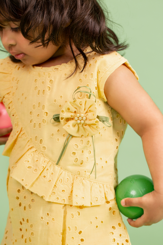Yellow Top with Schiffli Bow