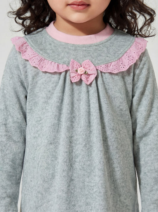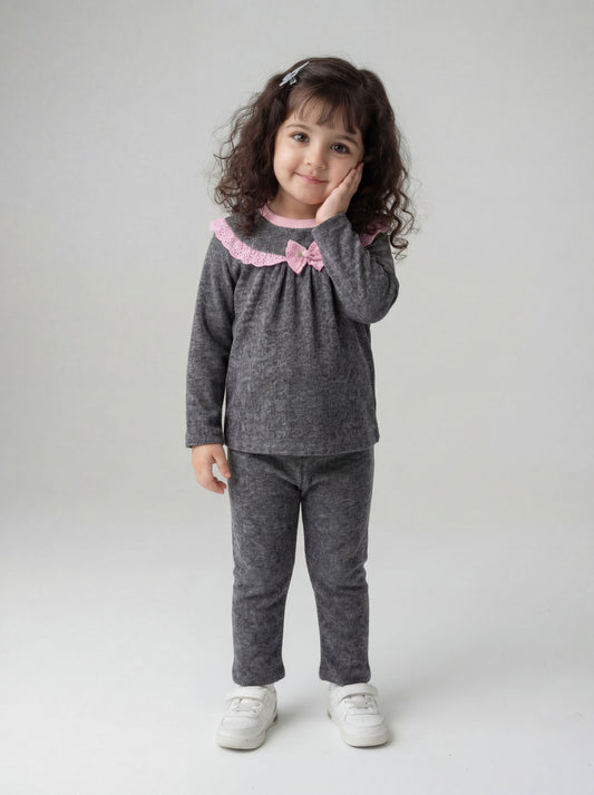 Grey nightsuit with pink lace detail- 038