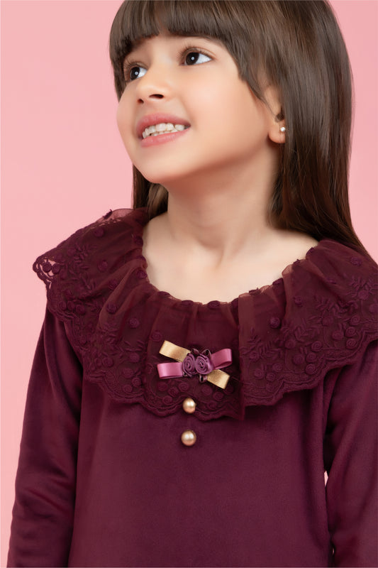 Maroon top with lace bows