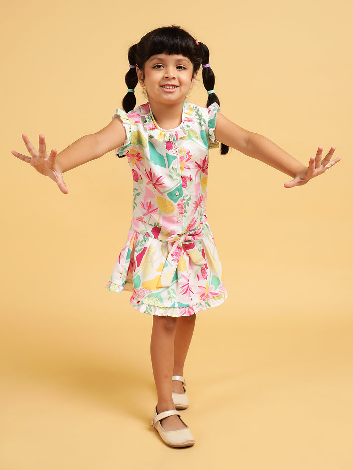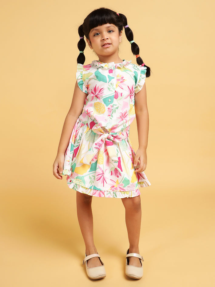 The perfect outfit for the beach. The vibrant print and ruffles detailing makes this set an absolute must have.