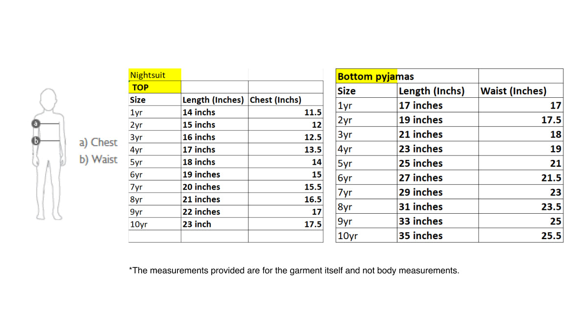 Closure - Front buttons, Elasticated Pj's
