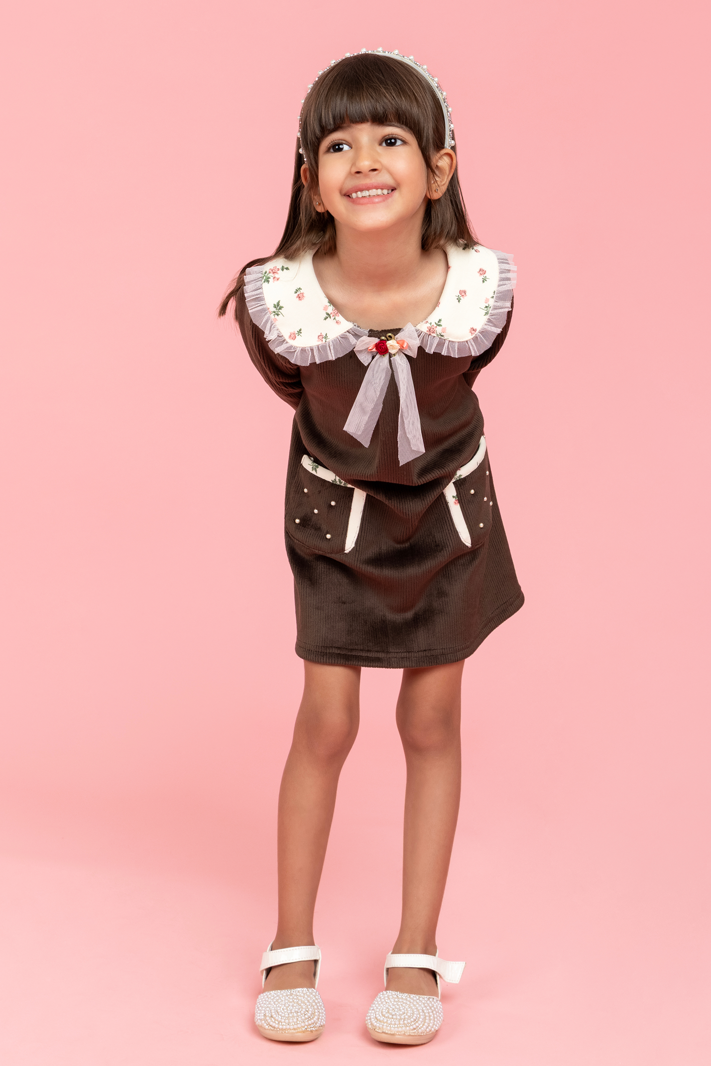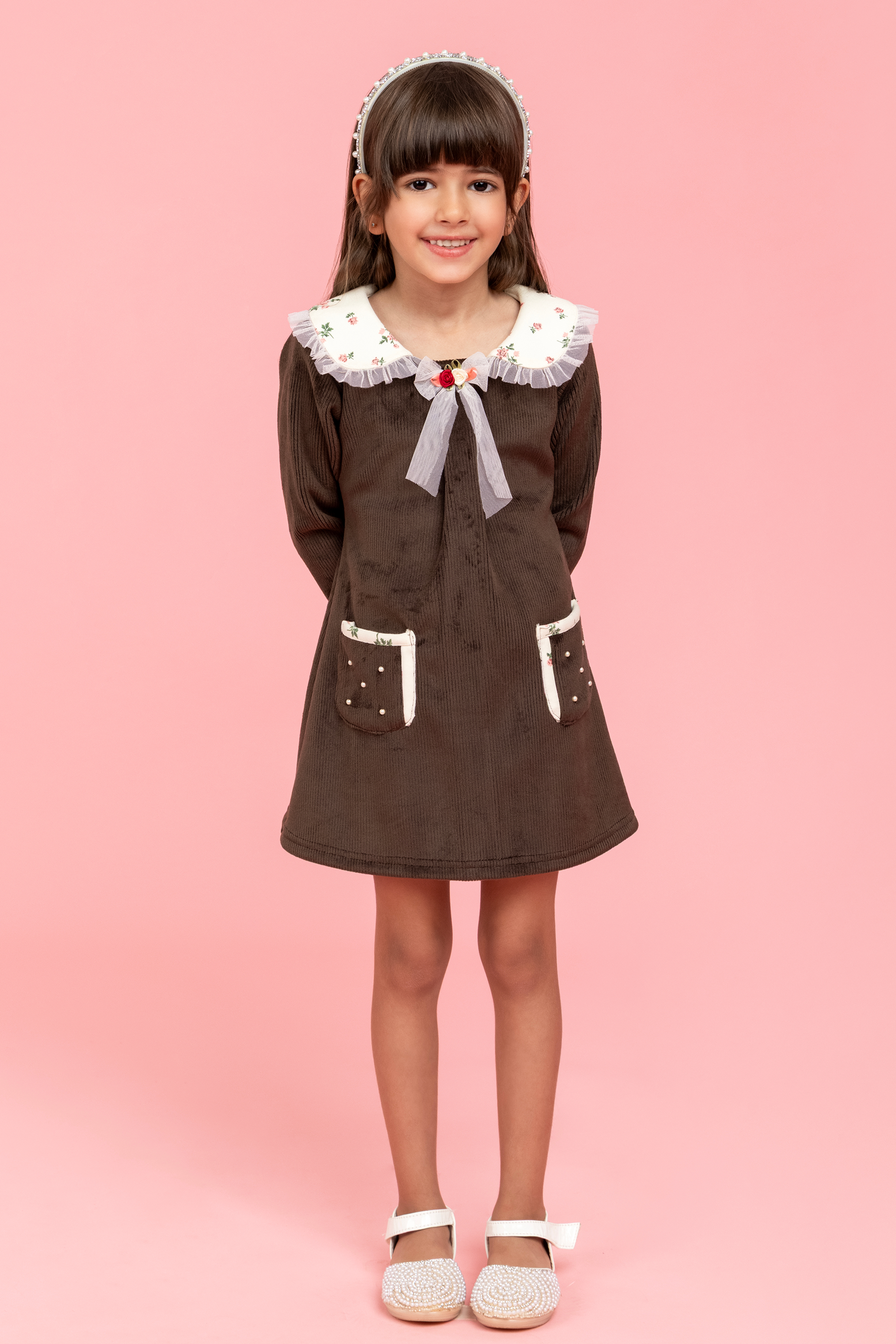 This dress pairs the earthy warmth of the brown tone with the delicate charm of the floral print, creating a versatile and timeless piece that transitions easily between seasons. The floral detailing softens the deeper tone of the brown base, offering a beautiful contrast that feels and looks graceful.