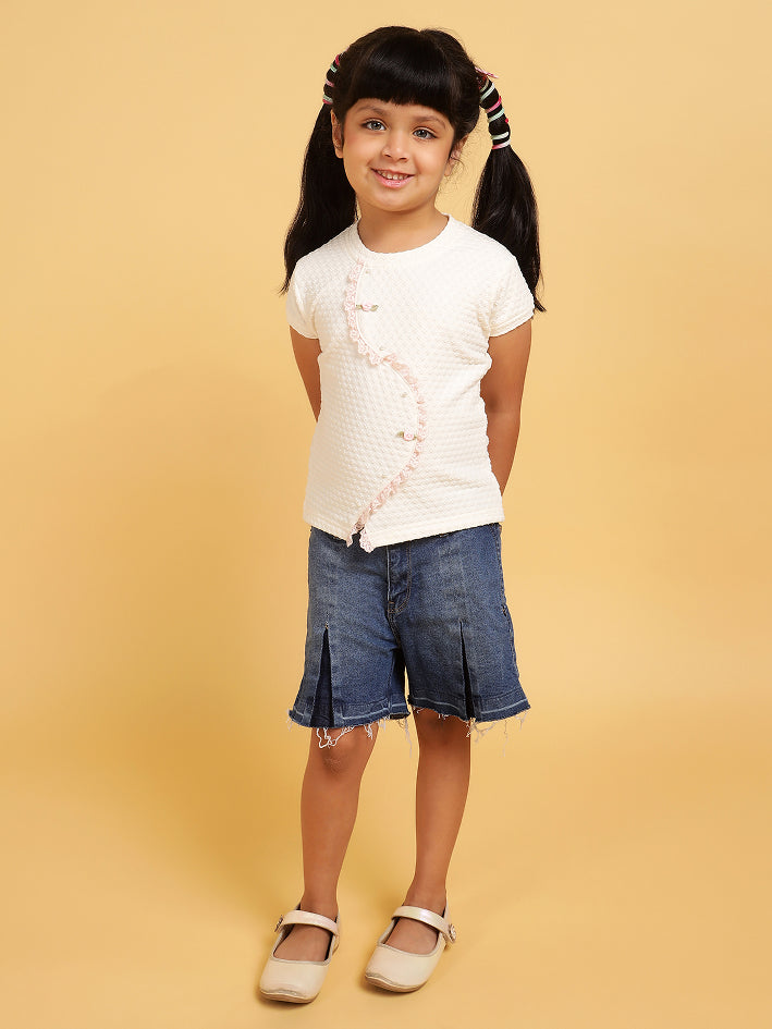 Add a touch of elegance to your little girls wardrobe with our soft lycra top with lace accents.