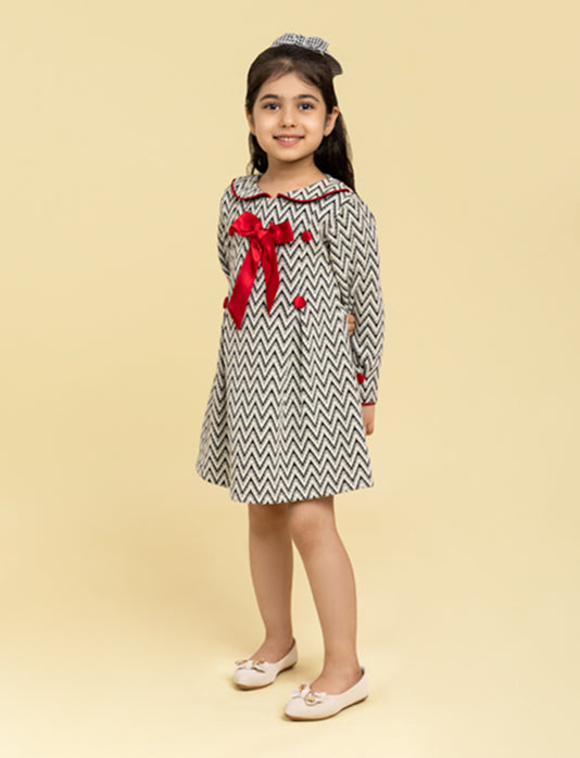 Add a splash of color and creativity to your little one's wardrobe with our girls' fun zig-zag pattern dress.The eye-catching zig-zag design in cheerful, contrasting colors makes this dress a standout piece for birthdays, playdates, or casual outings.