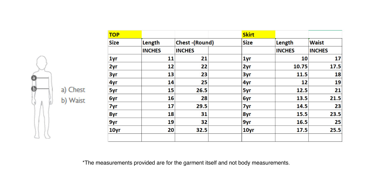 Closure - Top-Round neck top; Skirt- Back Elastic