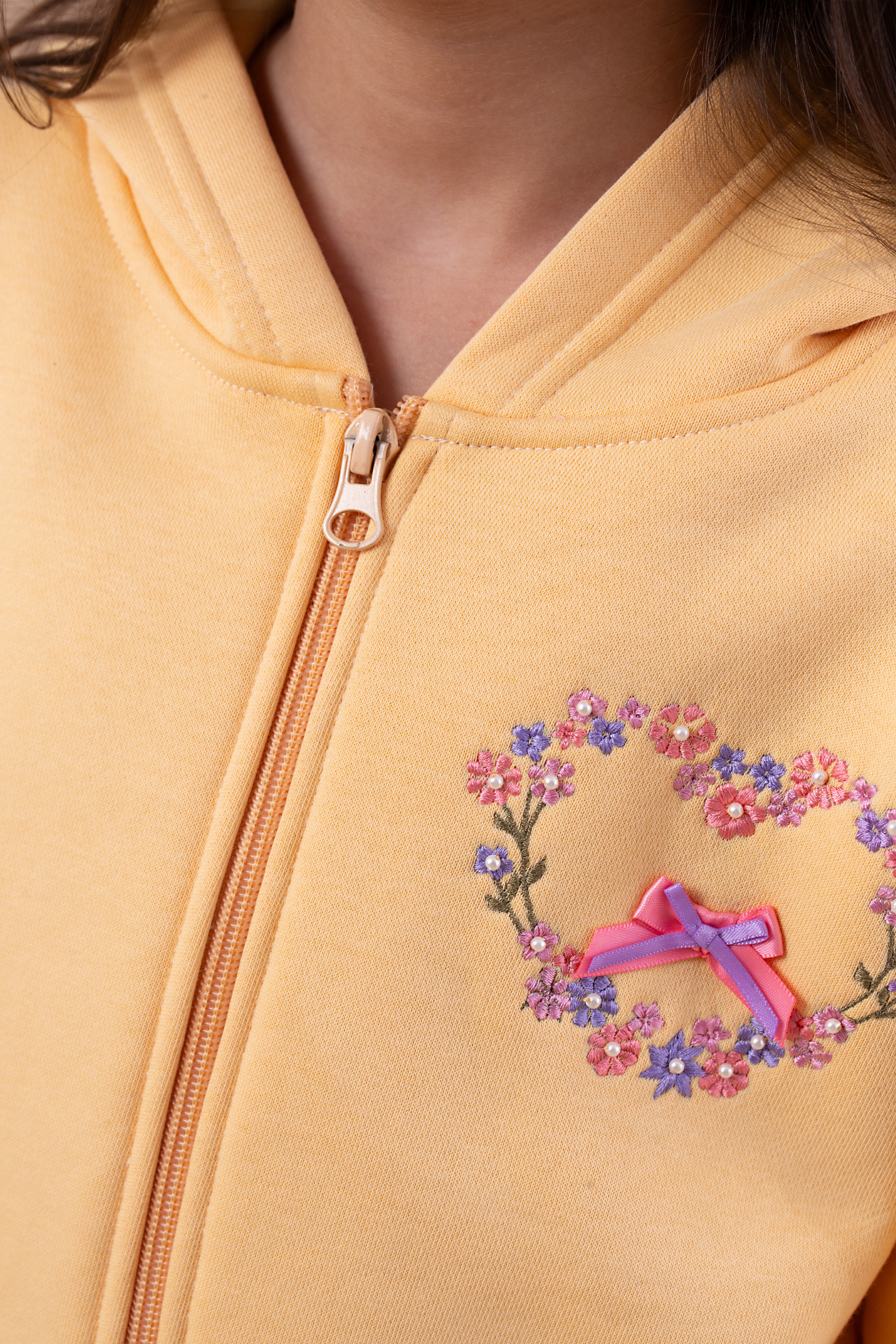 This tracksuit is designed for both formal wear and active play. Made with fleece ensuring ease of movement and durability. The yellow color and embroidery elevates the look making it ideal for playdates and also to complete the airport look.