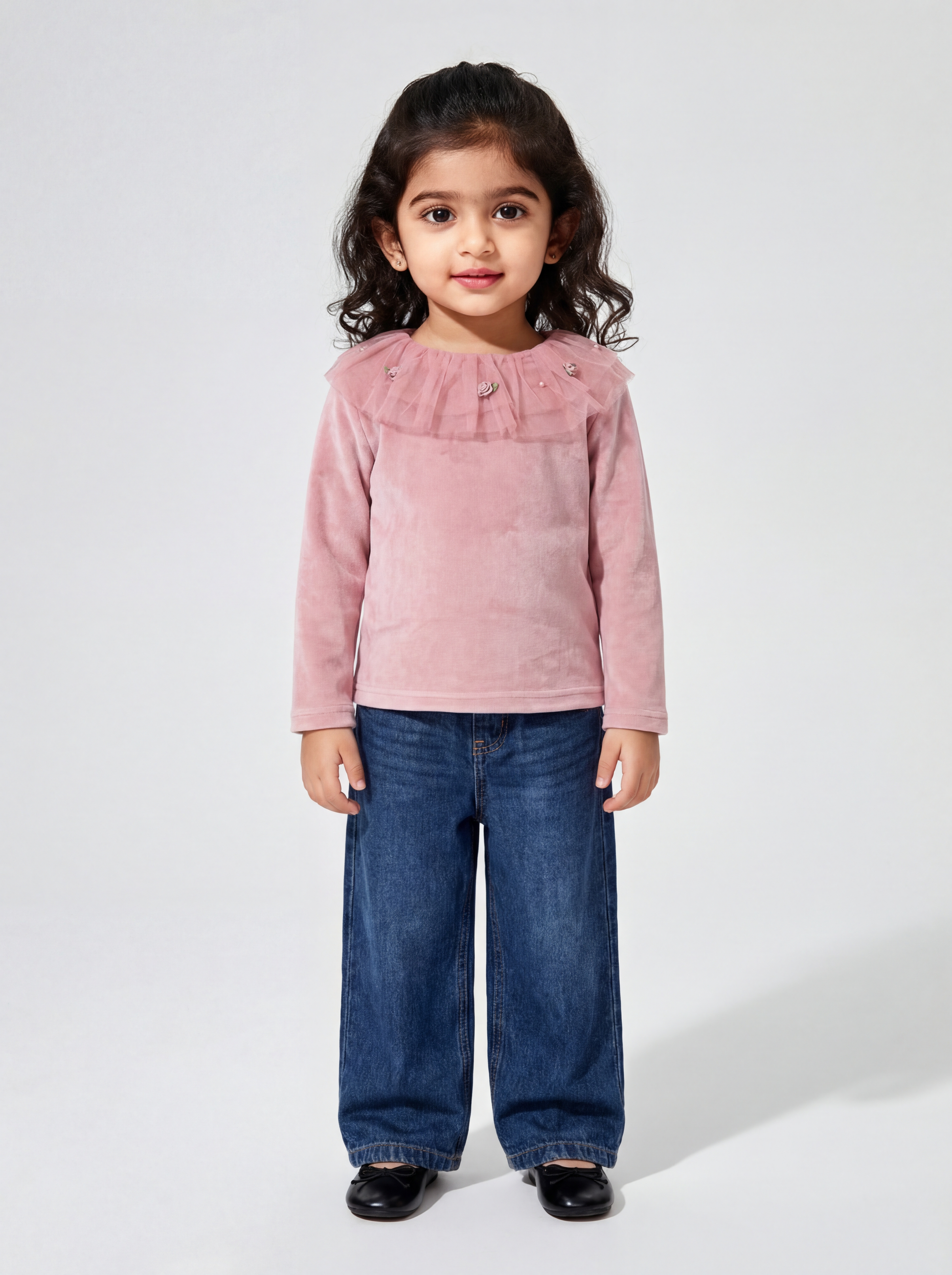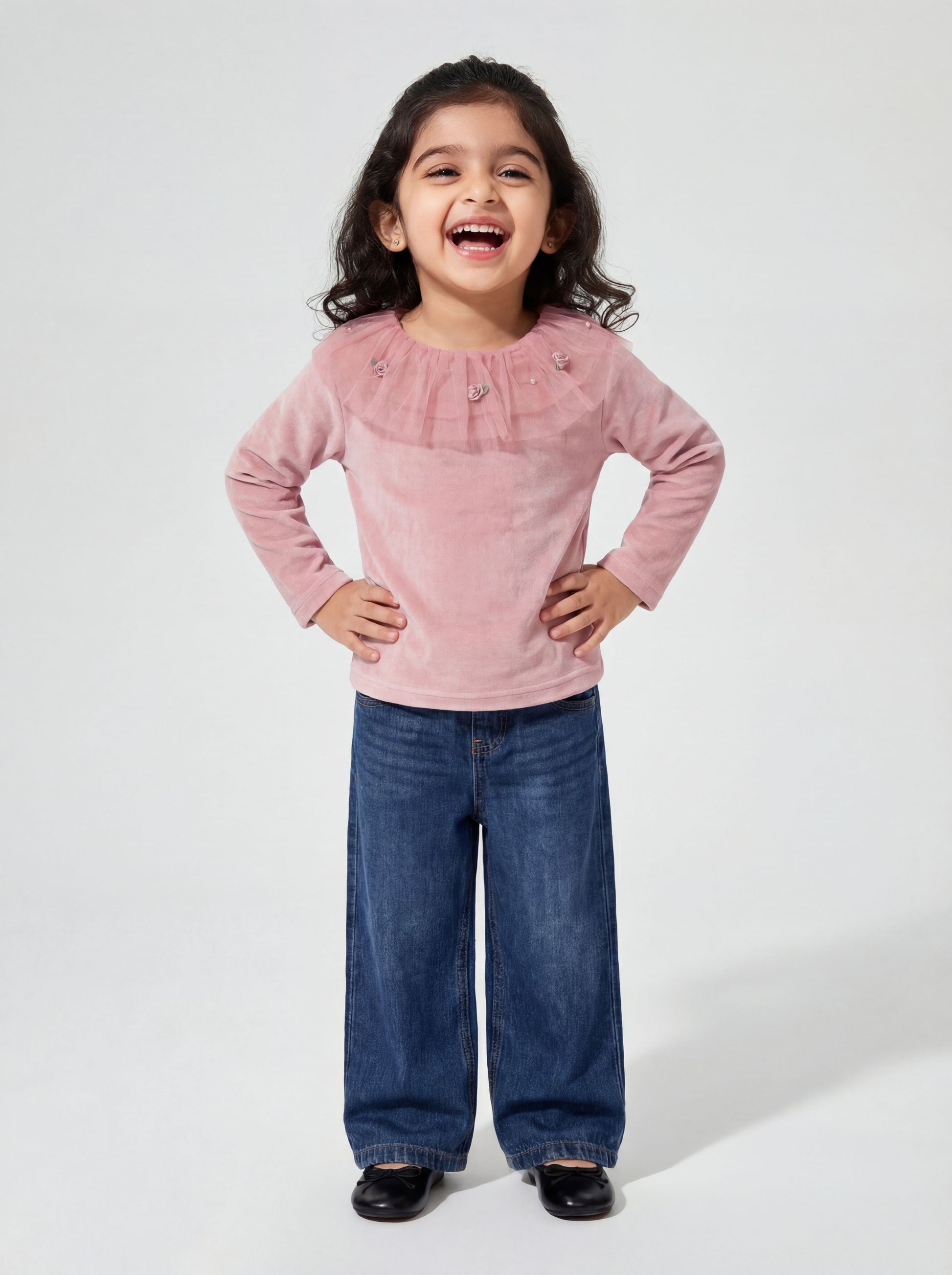 Stay warm, stay cute! This super soft velvet top with lace and net detailing is made from super-soft fabric that keeps kids snug all day long.