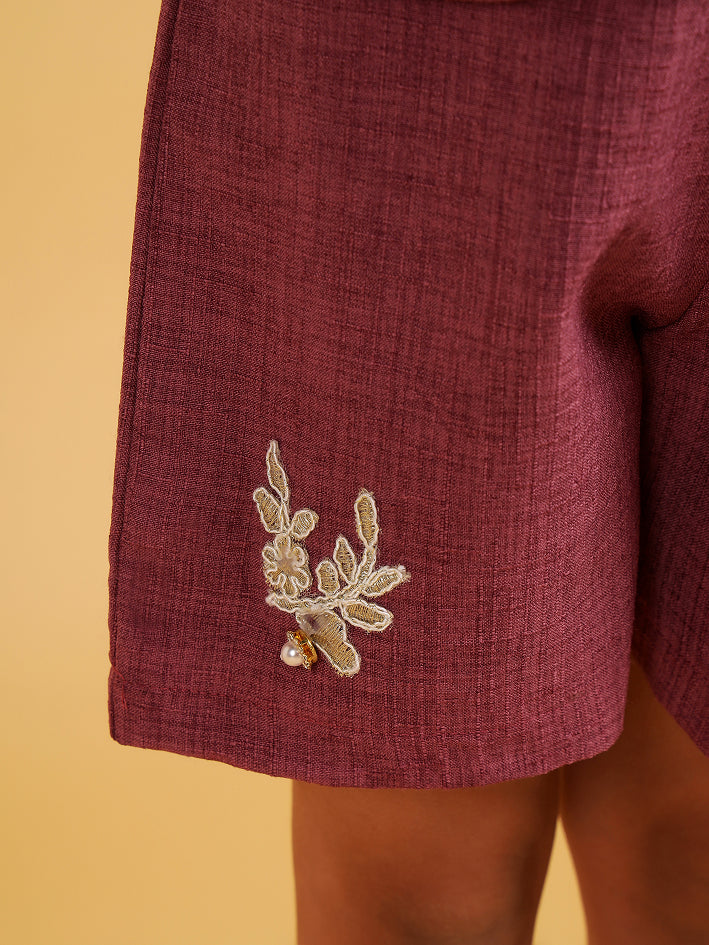Plum co-ord set with tie up top